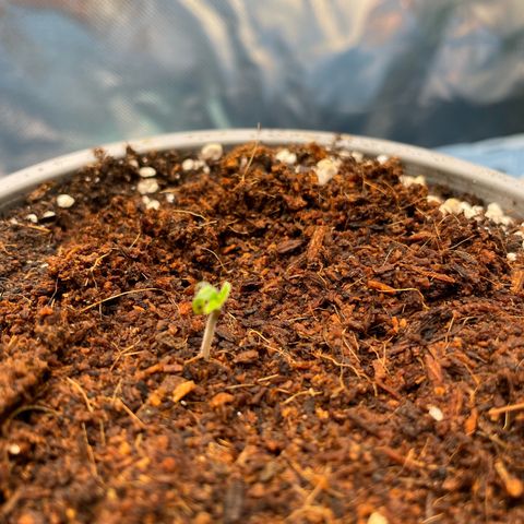 Transplanted rooting seed to small pot with plagron promix and inside a coco pellet. Put on a bottle for higher humidity.