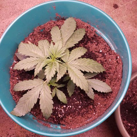 Looking good, may be root bound will need to transfer to a larger pot soon. Still not showing gender