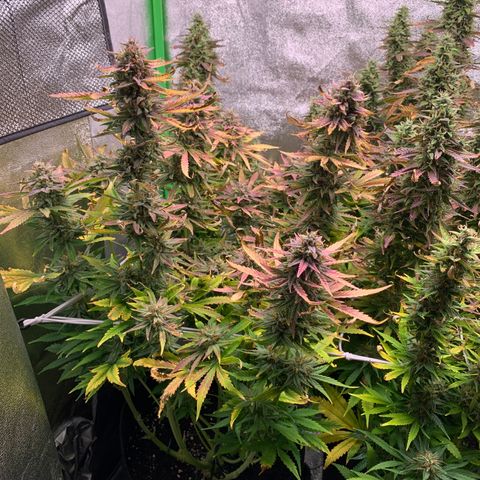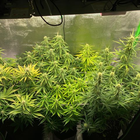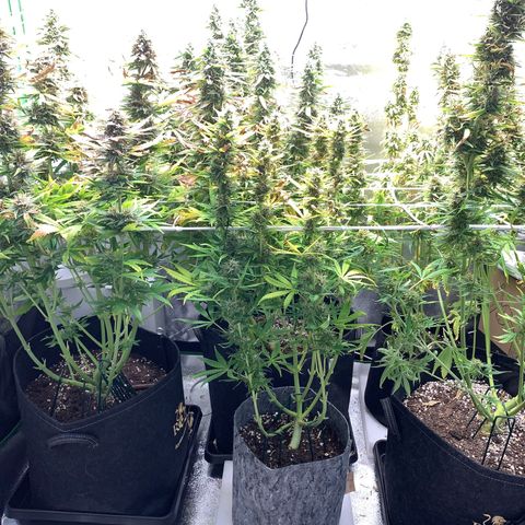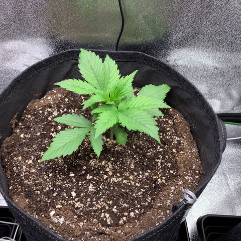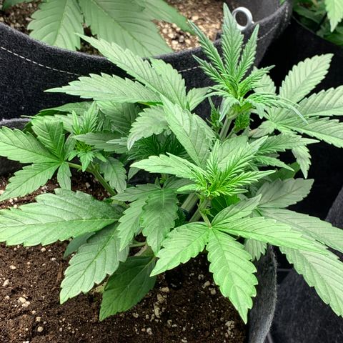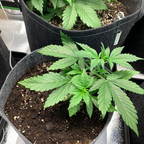 LST stage 1. First bend. Trying out Pegs this time. Still have the thick rubber ties if needed down the road. Plants are small so I think the pegs are fine for now.