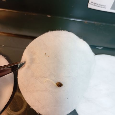 Keimung eingetreten, umtopfen in 0,3 l Töpfe.