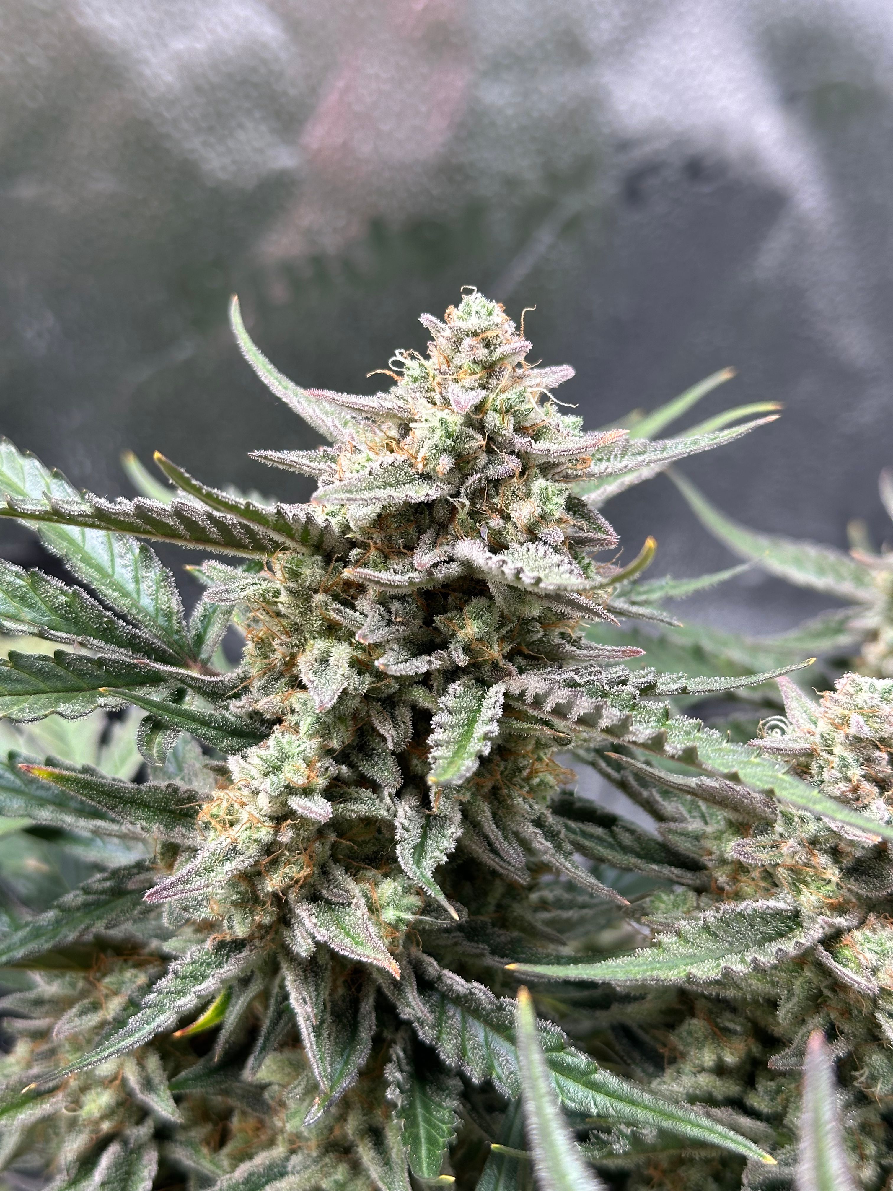 Die Trichome sind noch recht klar aber werden langsam milchig. Sie wird auch von Tag zu Tag immer frostiger.