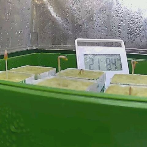 Inseriti semi in lana di roccia a immersi 24 ore in soluzione a PH6 con root booster 1:1000