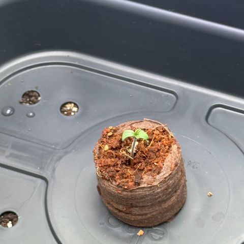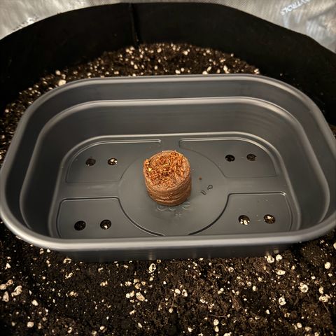 Jiffy in Mini Gewächshaus mit Abdeckung auf den finalen Topf gesetzt.