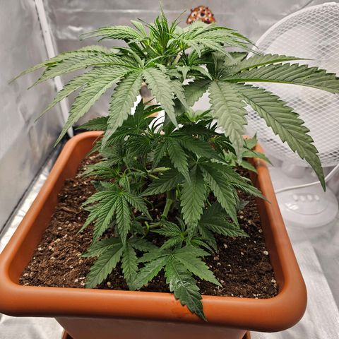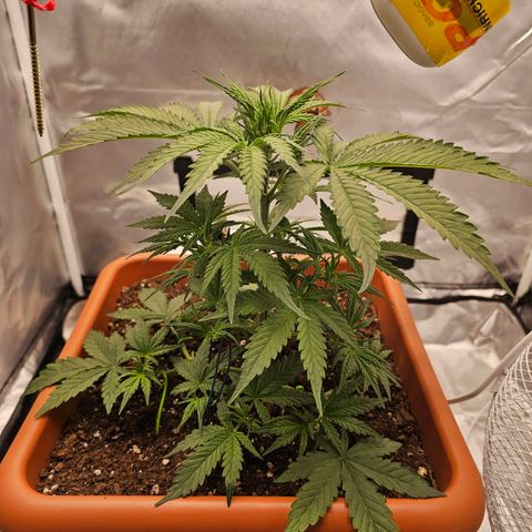 Blüte hat begonnen Temperaturen im Zelt 27°C Luftfeuchtigkeit liegt bei 45%