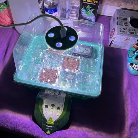 Mis 3 graines dans un verre d’eau afin qu’elle ramollisse avant de les mettre en terre (13h30)