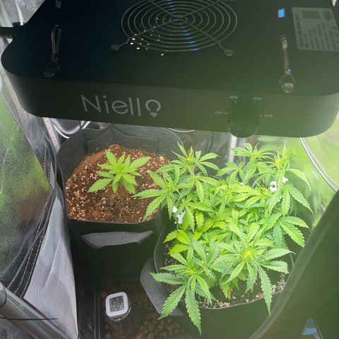 Added light 800ppfd/40000lux, turned on 4 side lamps, plant looks small but inside there are crusty buds developing pretty nice