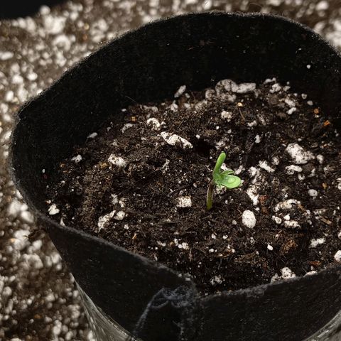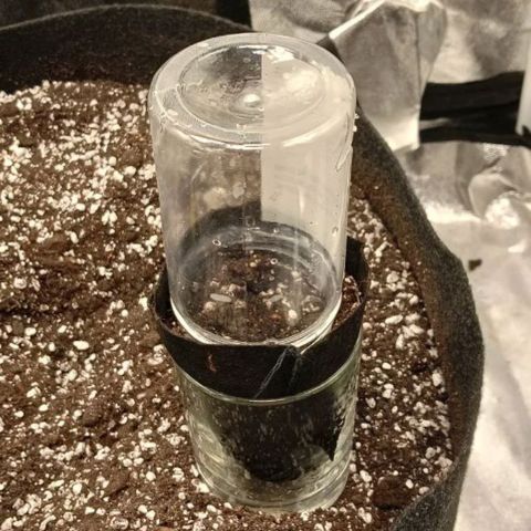Перед пересадкой в литровый горшок, в лунку под размер маленького горшка, была обильна засыпана микориза на торфе и пролита до дренажа раствором biobizz 0,5мл на 1л.
